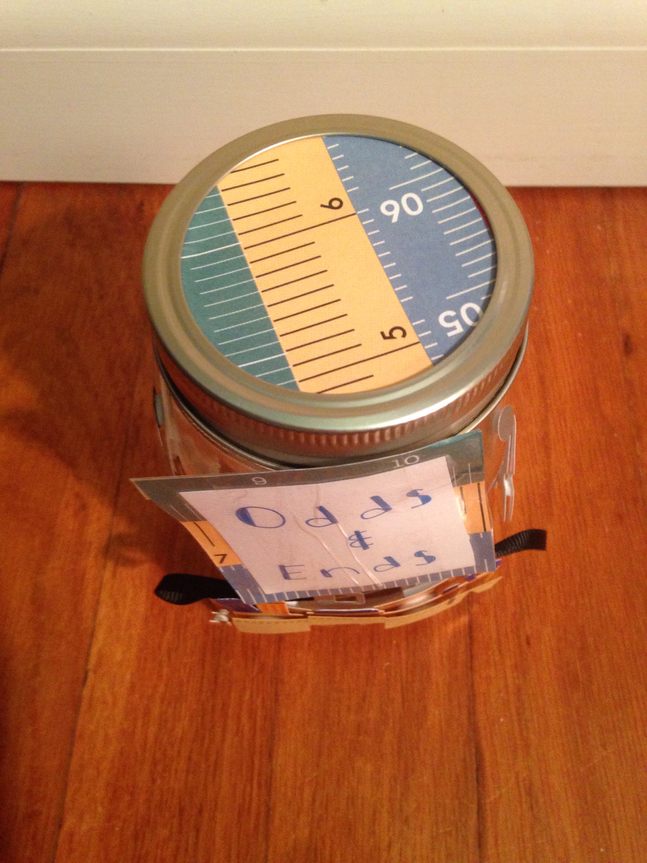 He has a workshop in the basement (located underneath my room so I’ve gotten used to the noise of saws), and he’s made a lot of things that are in our house: my bed, TV stand, corner hutch in the dining room, kitchen island, two end tables, and now he’s working on making new kitchen cabinets. I decided to make him a little catch-all jar for his shop.