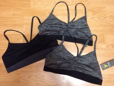 I’m the most excited about the two swing dresses and the romper, but the tank tops are so colorful and springy that I can’t wait for warmer weather. The black t-shirt is to replace an older one I have that’s too short, and the striped shorts are super comfy. Most of the active wear was on sale, including sports bras for $10, so naturally I got three because you can never have enough of them.