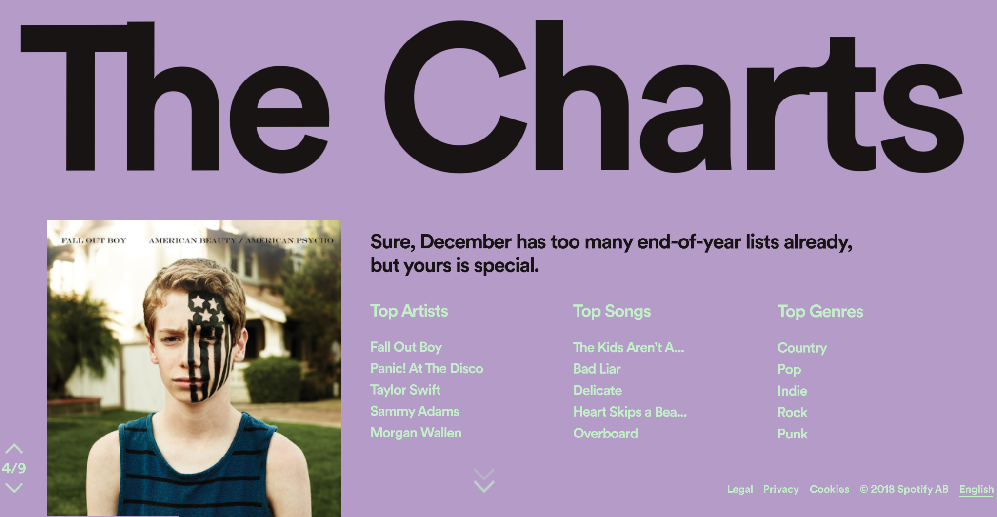 - Fall Out Boy was my top artist (Fifth grade me would be happy that I still listen to FOB 13 years later.)