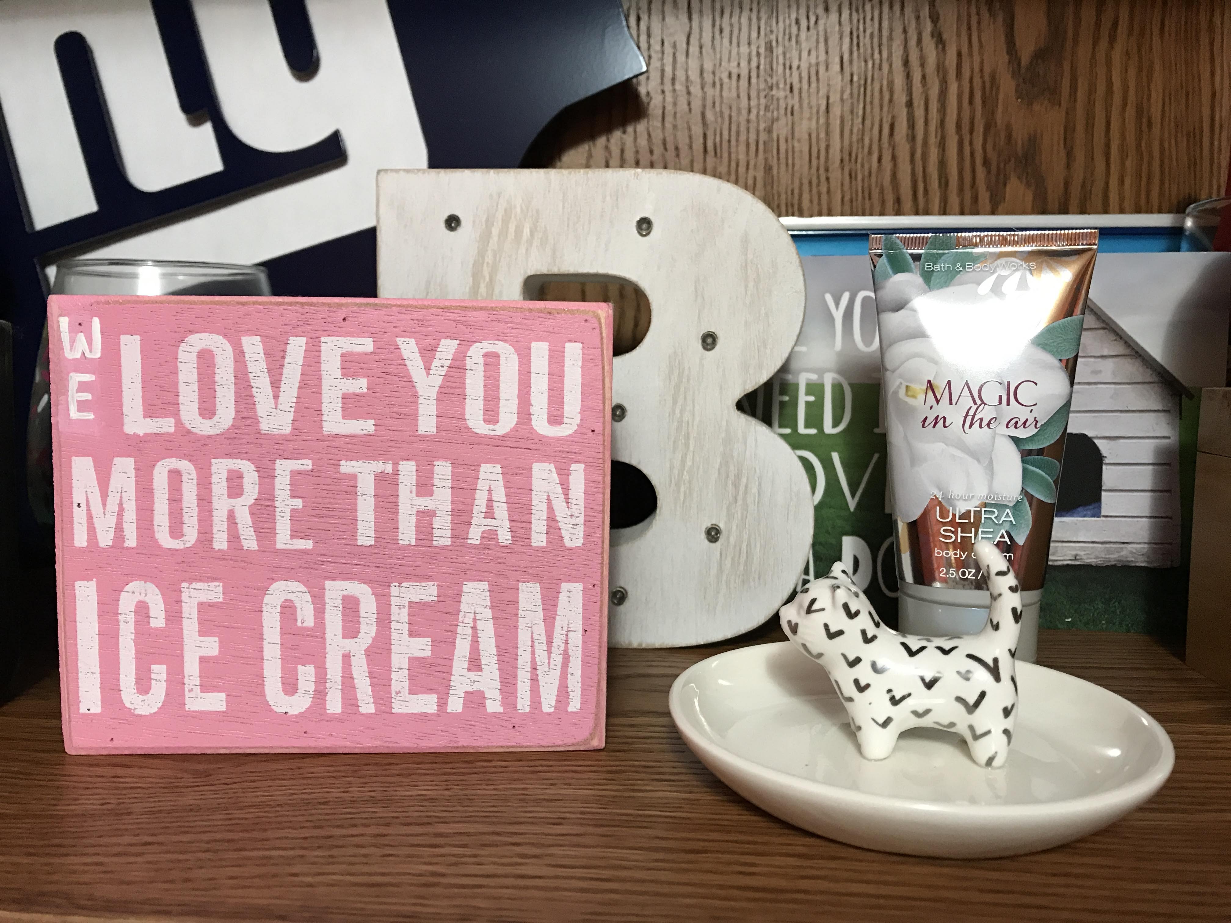 At work I have a pretty messy desk. I feel like it’s clean and organized for a day and then my notes and to-do lists are everywhere. I do have a few little candy jars, some pictures of coworkers at I at events, a smiley face mug, and this adorable little corgi figure from one of my coworkers to make my desk fun. Otherwise it’s just papers, monitors, and random stuff 😂