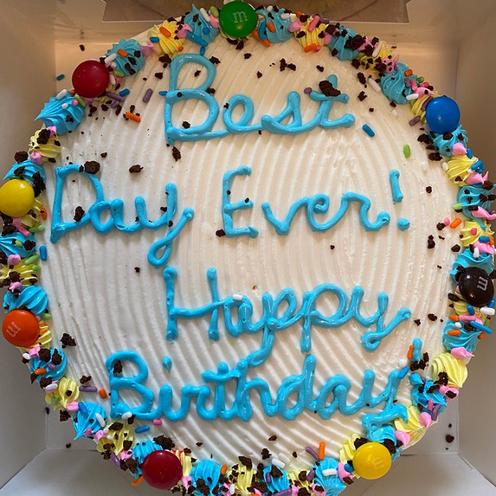 I share my birthday with my mom, and we got an ice cream cake from the ice cream shop to celebrate. I let the girls decorate it however they wanted, and one of the girls I’m close with decorated it and did a great job.