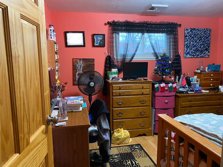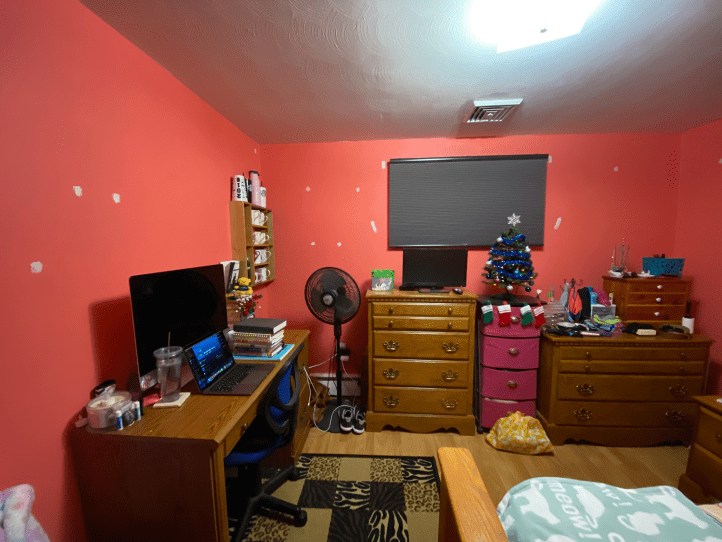 When COVID hit, I set up my work from home area in my bedroom—my childhood bedroom no less. The last time I had redecorated it was about five years ago when I was in college. The room had become a mix of the end of college times and now me trying to do my job remotely. Not to mention the coral paint on the walls was really starting to get to me after spending hours upon hours in the room, aside from just sleeping.