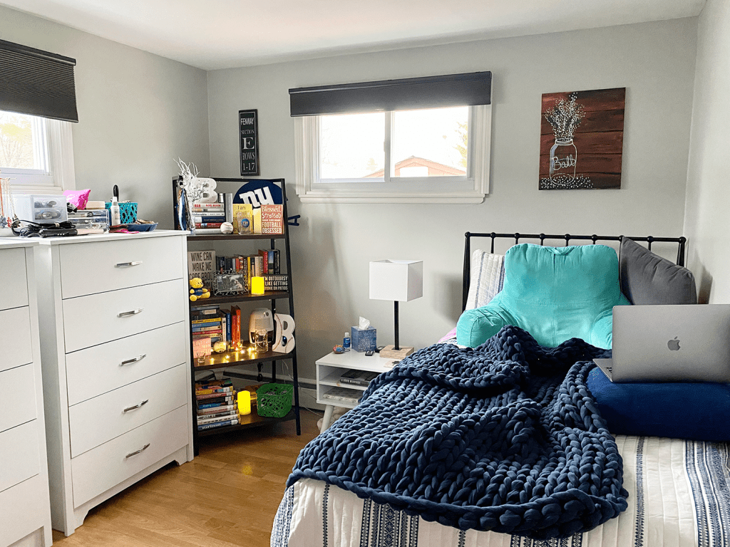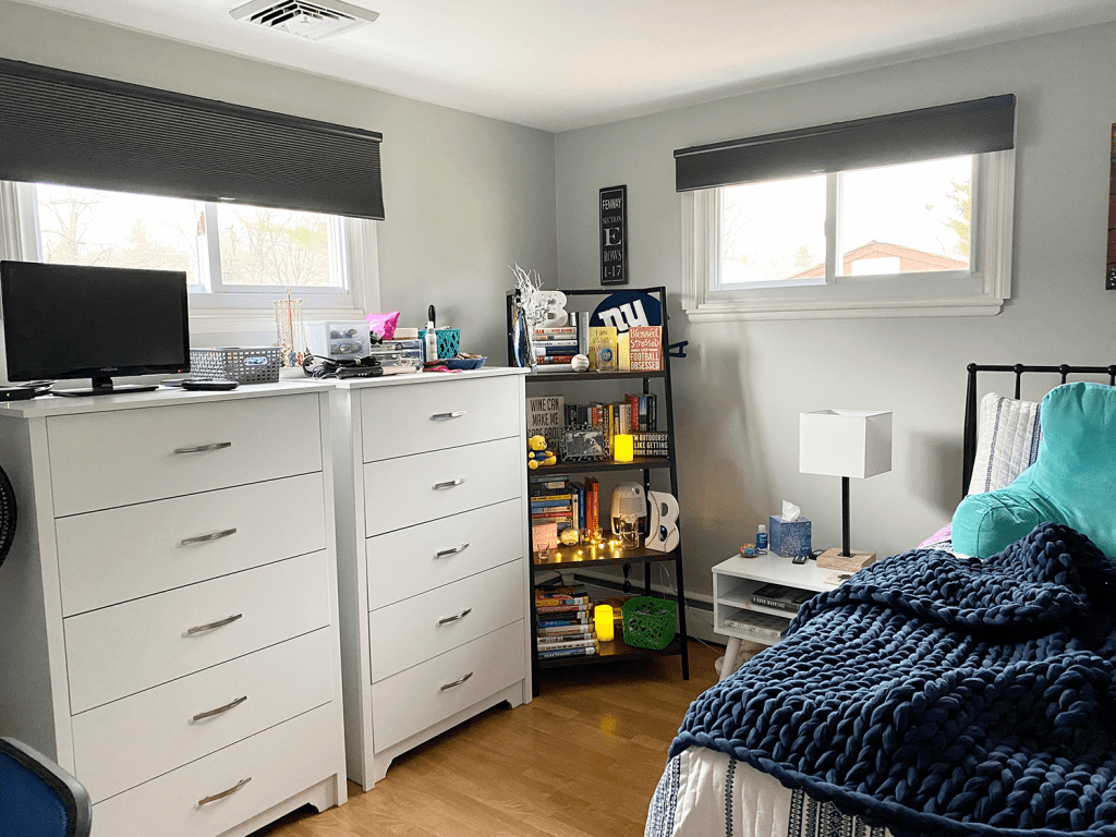 […] plan was for me to take all of my bedroom furniture from home. The room is pretty big, so it looked a bit empty with just a twin bed in there. But I already had […]