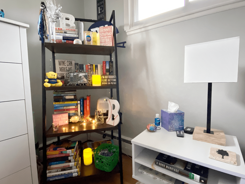 I spent most of the day filling in the bookcase, with books (obviously), little wooden signs, fairy lights, and other things I used to keep on my desk but now have a new home. The nightstand I ordered with all of the other furniture was scheduled to arrive that day, and it did. I assembled it by myself in my room, along with the lamp I had also bought.