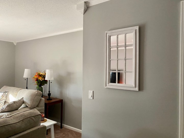 Here are the before photos. See, nothing terrible, but I wanted to get rid of the holes and hang up things in different places; what’s hung up in these photos were on the rogue nails that were left.