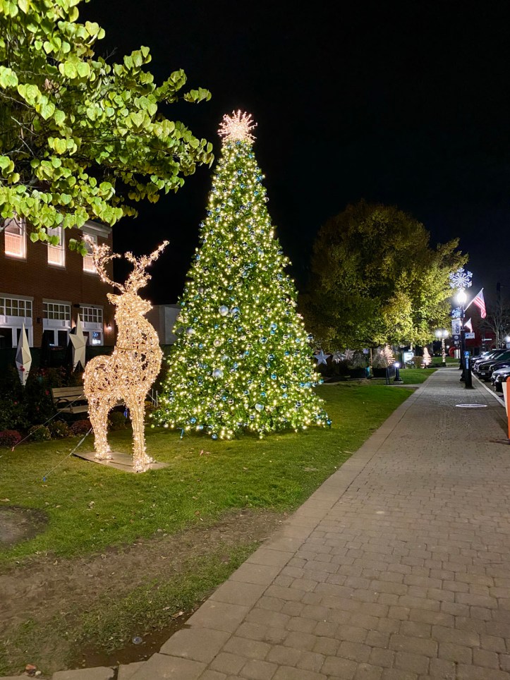 After dinner, we walked around Blue Back Square and West Hartford Center, which were both decorated already for Christmas. Josh tried to tell me that the lighted reindeer was to scale.