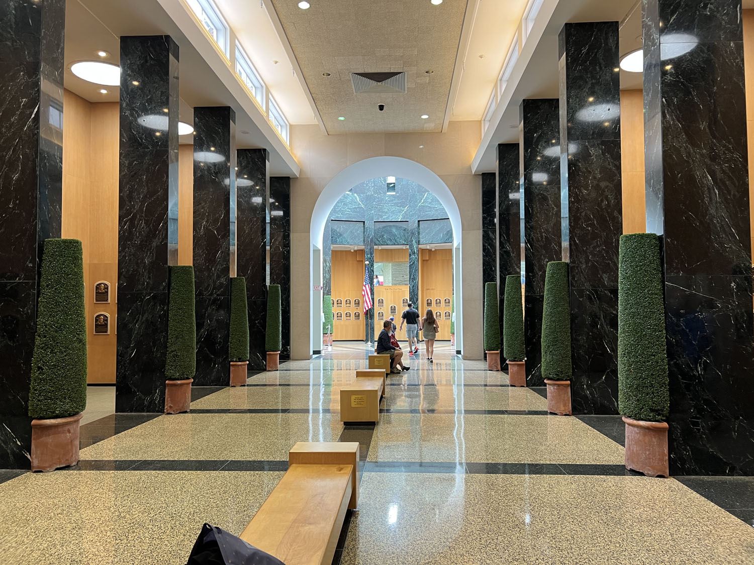 Then it was off to the Hall of Fame! Of course, I had to take a picture in front before we went inside. Masks weren’t required but suggested, and we were going to wear ours anyway since we’d be around crowds of people. (For the most part, we wore our masks inside when we were around a lot of people, just to be safe.)