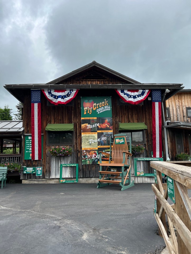 Our final stop was Fly Creek Cider Mill and Orchard in Fly Creek, which was about a ten minute drive from the hotel. And it was super cute. Inside they had marketplace with homemade products like cheeses, jams, relishes, apple pies, cider donuts, along with other cutesy decor items. Josh ended up getting a half dozen of cider donuts.