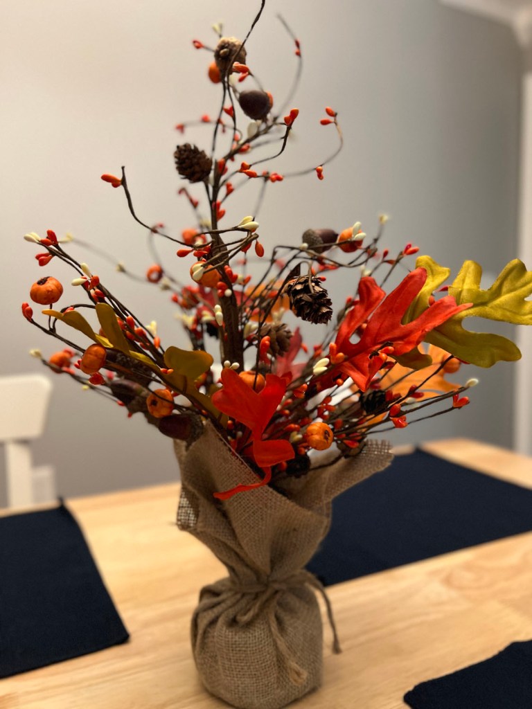I’m surprised I made it this far into September before pulling out my fall decorations. I think last year I put them up right after Labor Day, but I let myself do that since it was my first fall in the condo. Now it’s turning into “Oh, wait, I don’t remember how I got this” because I’ve acquired a lot of fall decorations.