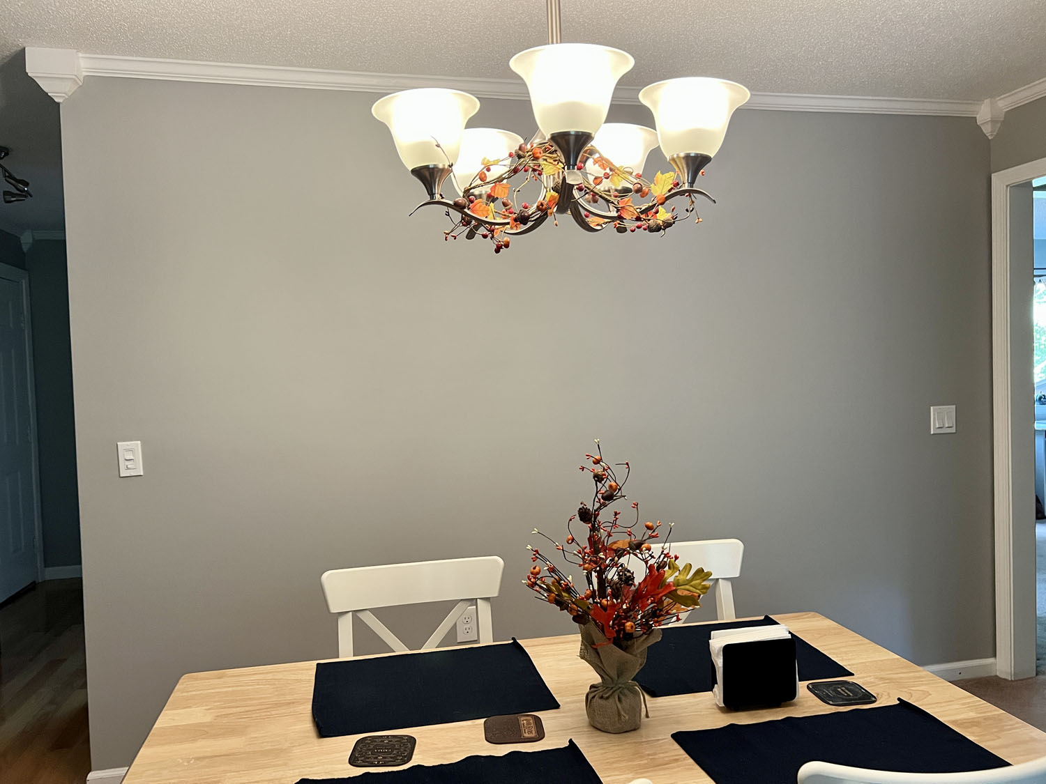 I’m surprised I made it this far into September before pulling out my fall decorations. I think last year I put them up right after Labor Day, but I let myself do that since it was my first fall in the condo. Now it’s turning into “Oh, wait, I don’t remember how I got this” because I’ve acquired a lot of fall decorations.