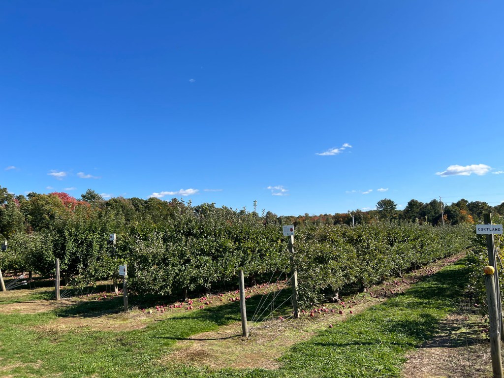 So we quickly came up with a compromise. There’s an orchard in town where I’ve gone before with my parents to pick apples and blueberries, and they still had apples available for PYO. And, of course, we still wanted to get fun drinks after, so we decided to a restaurant in town where we’ve been before on date night and I know always has a seasonal cocktail menu.