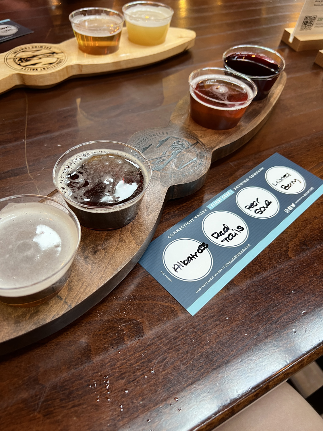 Our last stop was Connecticut Valley Brewing in East Windsor. I had been there a few times before, and Josh had been, too, but we hadn’t gone together yet. I picked to go there because they have flights and food.