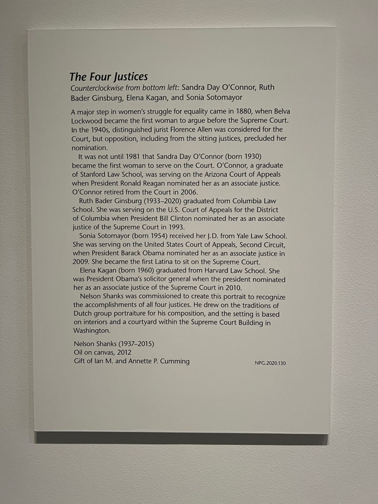 On our way out, we saw this painting of Sandra Day O’Connor, Ruth Bader Ginsburg, Elena Kagan, and Sonia Sotomayor.
