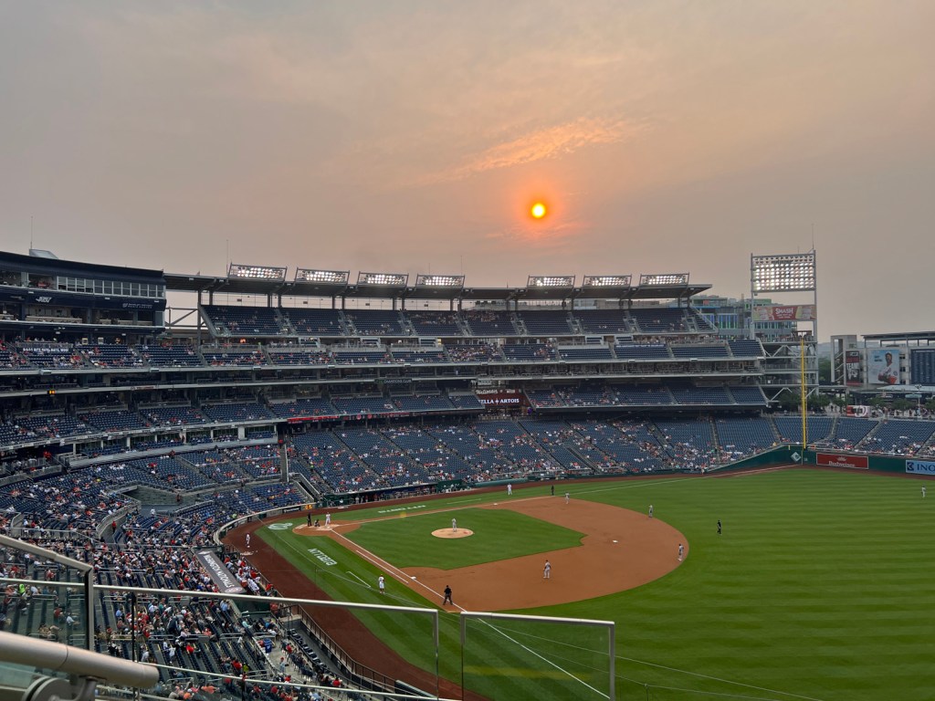 During the ninth inning, it was getting incredibly buggy up where we were sitting, so we walked down to the level below and sat in seats right off the concourse to finish watching the game. The Nationals lost 6-2, and after hitting the bathrooms, we walked back to the Metro; we took the same lines we did going there, just in reverse.