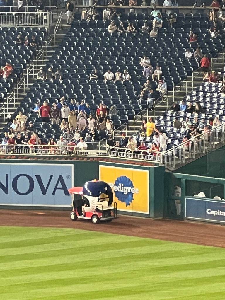 Abe Lincoln won the Racing Presidents run, and I got to see a bullpen cart in action! Unfortunately, none of the bullpen pitchers used the cart, but it still drove out every time there was a pitching change.