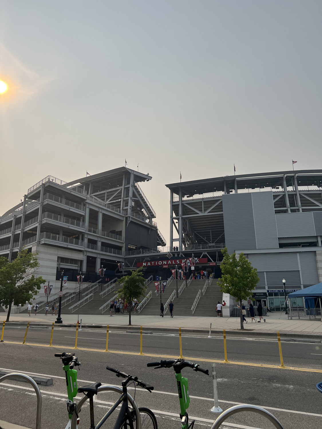 During the ninth inning, it was getting incredibly buggy up where we were sitting, so we walked down to the level below and sat in seats right off the concourse to finish watching the game. The Nationals lost 6-2, and after hitting the bathrooms, we walked back to the Metro; we took the same lines we did going there, just in reverse.