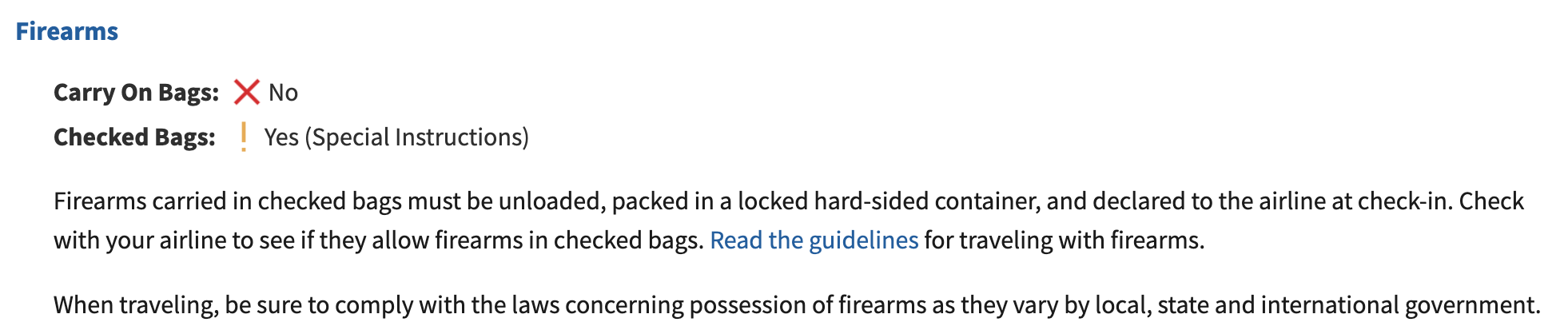 Now, if Jones had used the TSA website, he would have seen the following after searching for “firearm”: