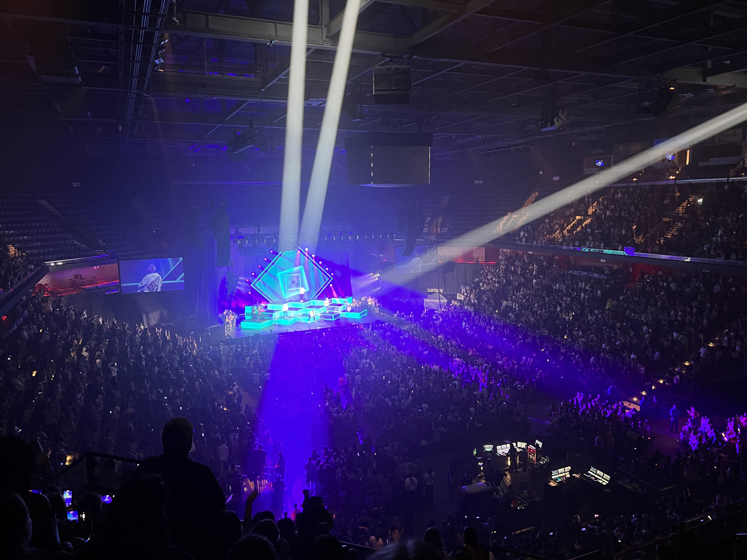 Around 6:30 p.m. we went to our seats, which were in close-to-nose-bleeds territory. Hey, when I bought the tickets, I found the cheapest ones available, and they were up top. But honestly, the seats were good. I was worried we’d be too far back or too high up to see the stage, but it was a pretty decent view.