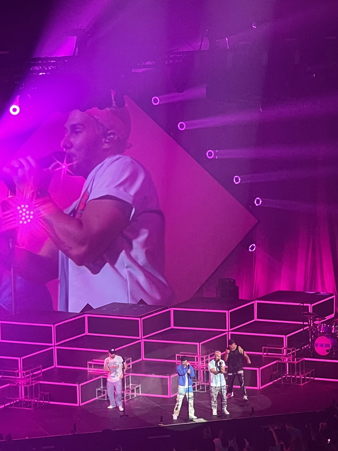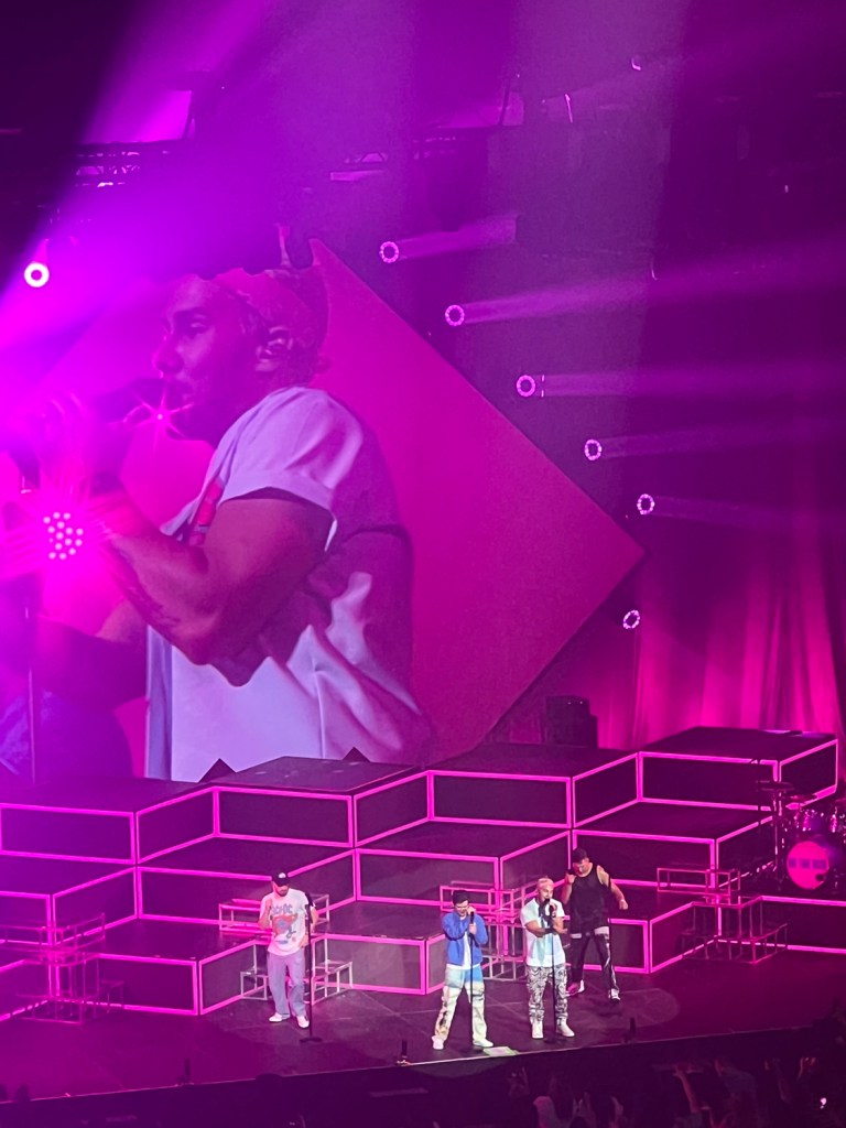 The age range of attendees was from actual parents—like probably mid-40s there with their kids—to like 6 year olds. There appeared to be people around our age—late-20s to early-30s—and a bunch of teenagers, but I was confused about the young children. When did they find out about BTR? The show has been off the air since 2013 but is on Netflix. (I did a re-watch last year.) And they haven’t put out an album in 10 years.