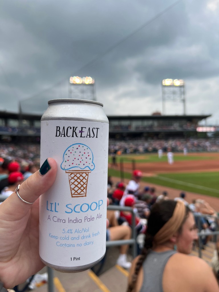 Our second beers of the game were Lil’ Scoops, also from Back East Brewing. Josh also got a pretzel and I got one of those nacho trays with the chips and the really bad-for-you yellow cheese.