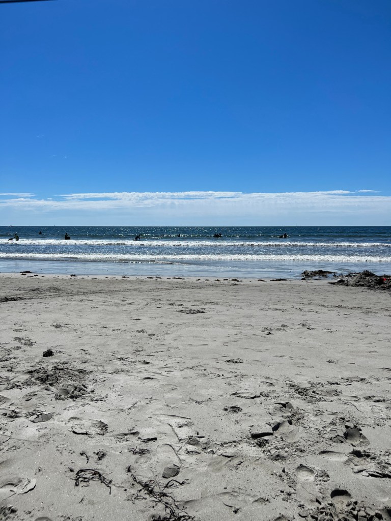 Parking is right along the road to the beach, and Josh had to drive down and back before finding an open spot. Luckily, the sand right next to our spot was open, so we didn’t have to walk far—or schlep, my favorite beach activity.
