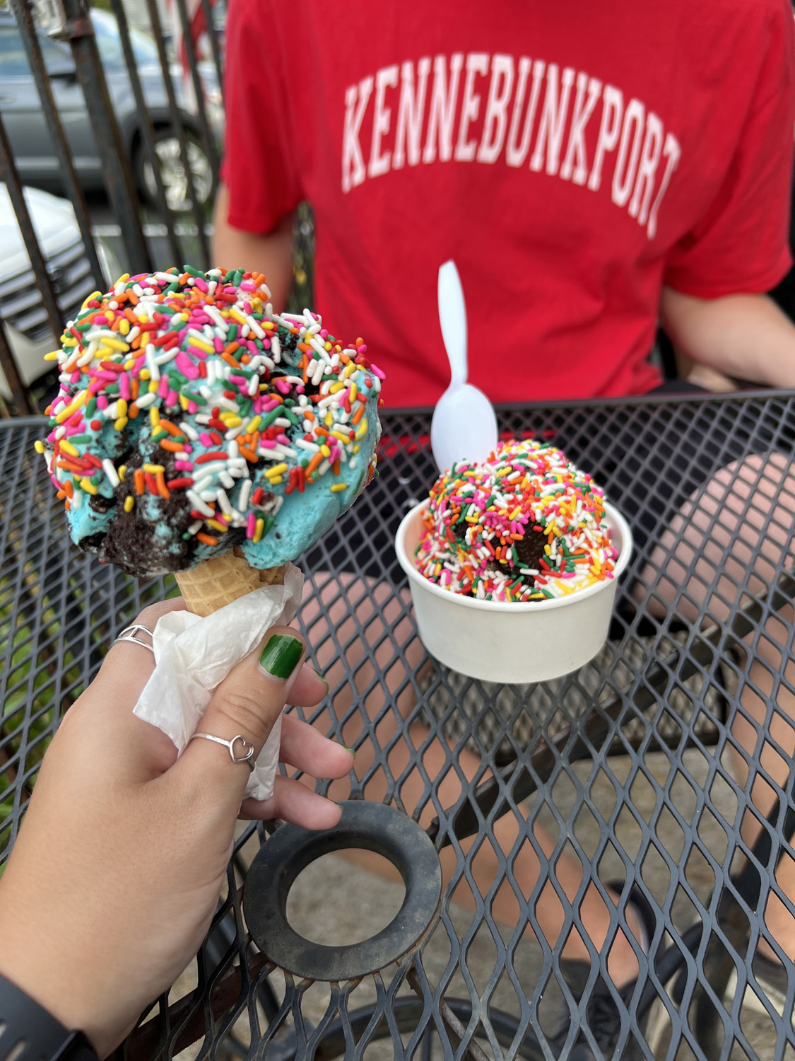Afterward, we went to Shain’s of Maine in Sanford for ice cream—a repeat favorite from last year. I got Dino Crunch—because I’m a child—and Josh got Irish Creme & Cookies. I ended up making a mess because I got mine on a cone, and Josh had to go get extra napkins.