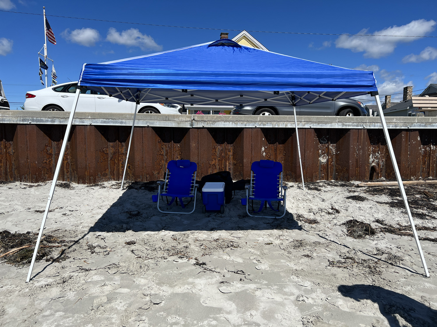Parking is right along the road to the beach, and Josh had to drive down and back before finding an open spot. Luckily, the sand right next to our spot was open, so we didn’t have to walk far—or schlep, my favorite beach activity.