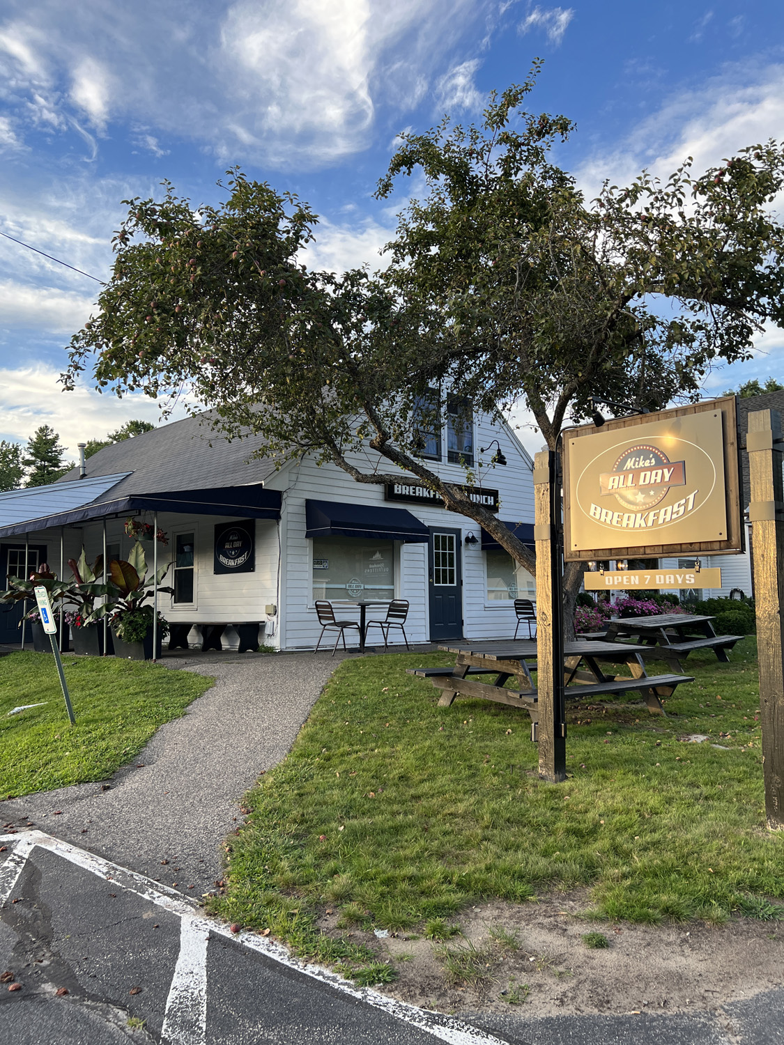 We went out for breakfast at Mike’s All Day Breakfast in Kennebunkport—well, actually, it turned into brunch because of the 45 minute wait. We got there around 9:40 a.m. and put our name in for the wait list. Around 10:30 we were up next and called in for a table.