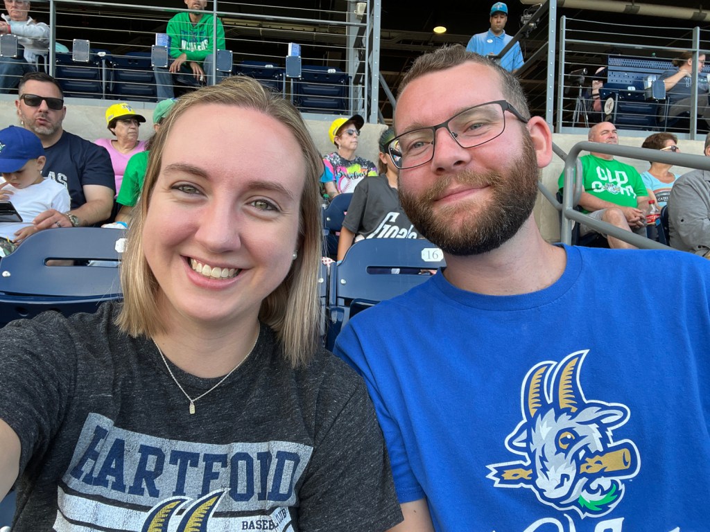 We’ve come to the finale of my series this summer called “Going to [all] of the Hartford Yard Goats games.” All actually equals three, but it’s the most I’ve gone to in a summer so far. Game #1 was just Josh and I, and game #2 was with Josh, my parents, and two family friends. The same cast of characters were around for game #3 this past weekend.