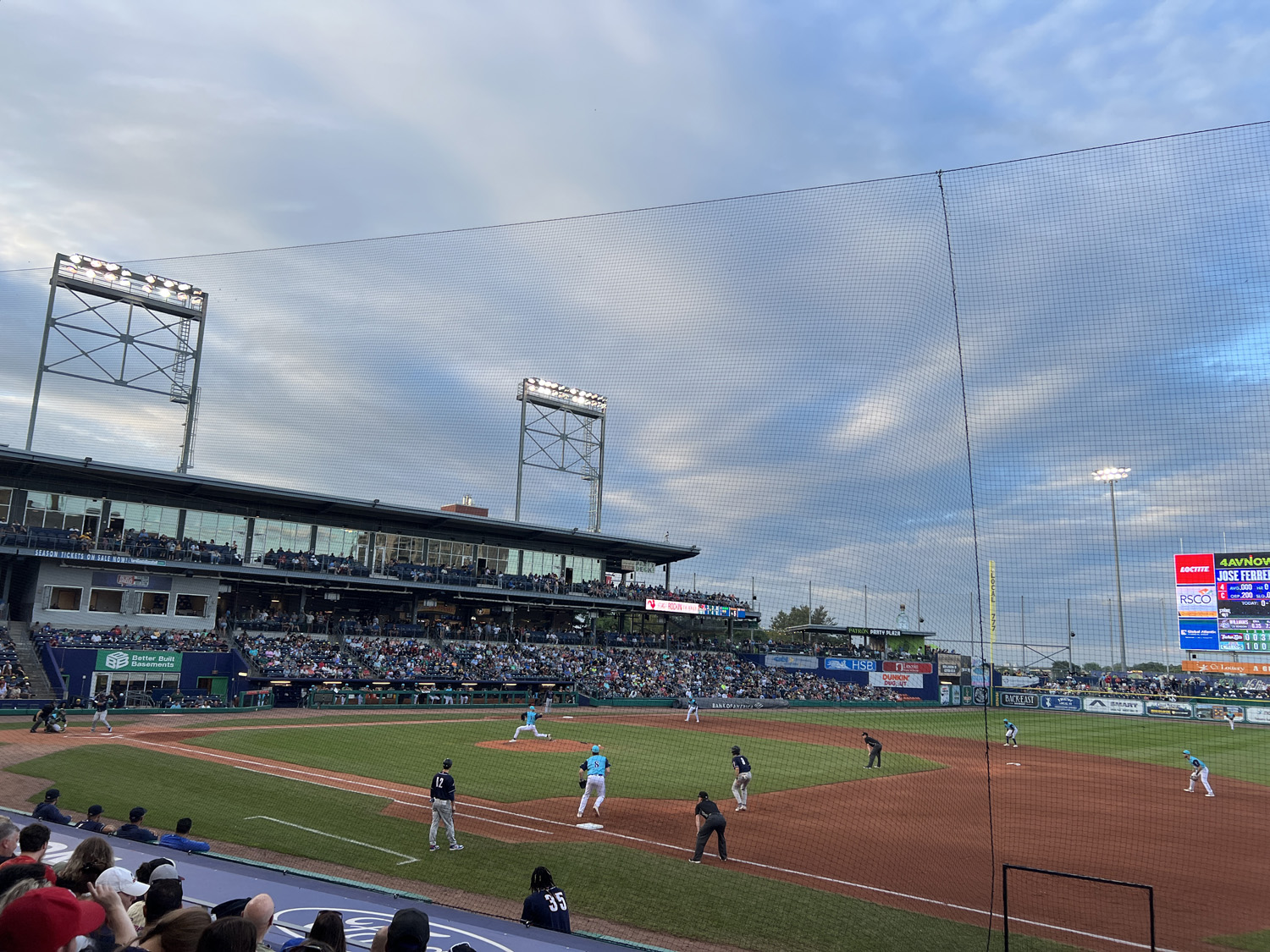 Made it to my first game this year! We also saw the Fisher Cats but must have been a different night because they were playing as the plain ol Goats. I did buy a Bouncing Pickles hat haha