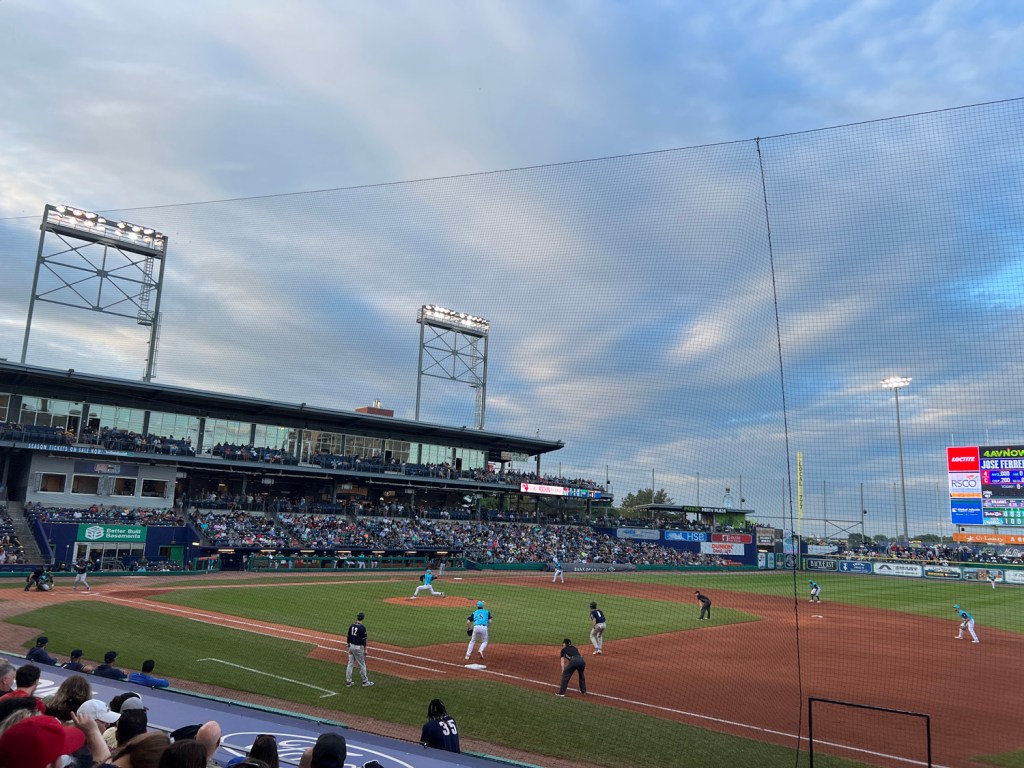 The Chivos were playing the New Hampshire Fisher Cats, the double AA affiliate of the Toronto Blue Jays. Back in 2018, I went to a game against the Fisher Cats and got to see Vlad Guerrero Jr. and Cavan Biggio both play, which was super cool. The family friends who were at the game with us are a couple my mom has known forever, and the husband is a Blue Jays fan. So, of course, he was cheering for the Fisher Cats; we kept booing him whenever he’d cheer.