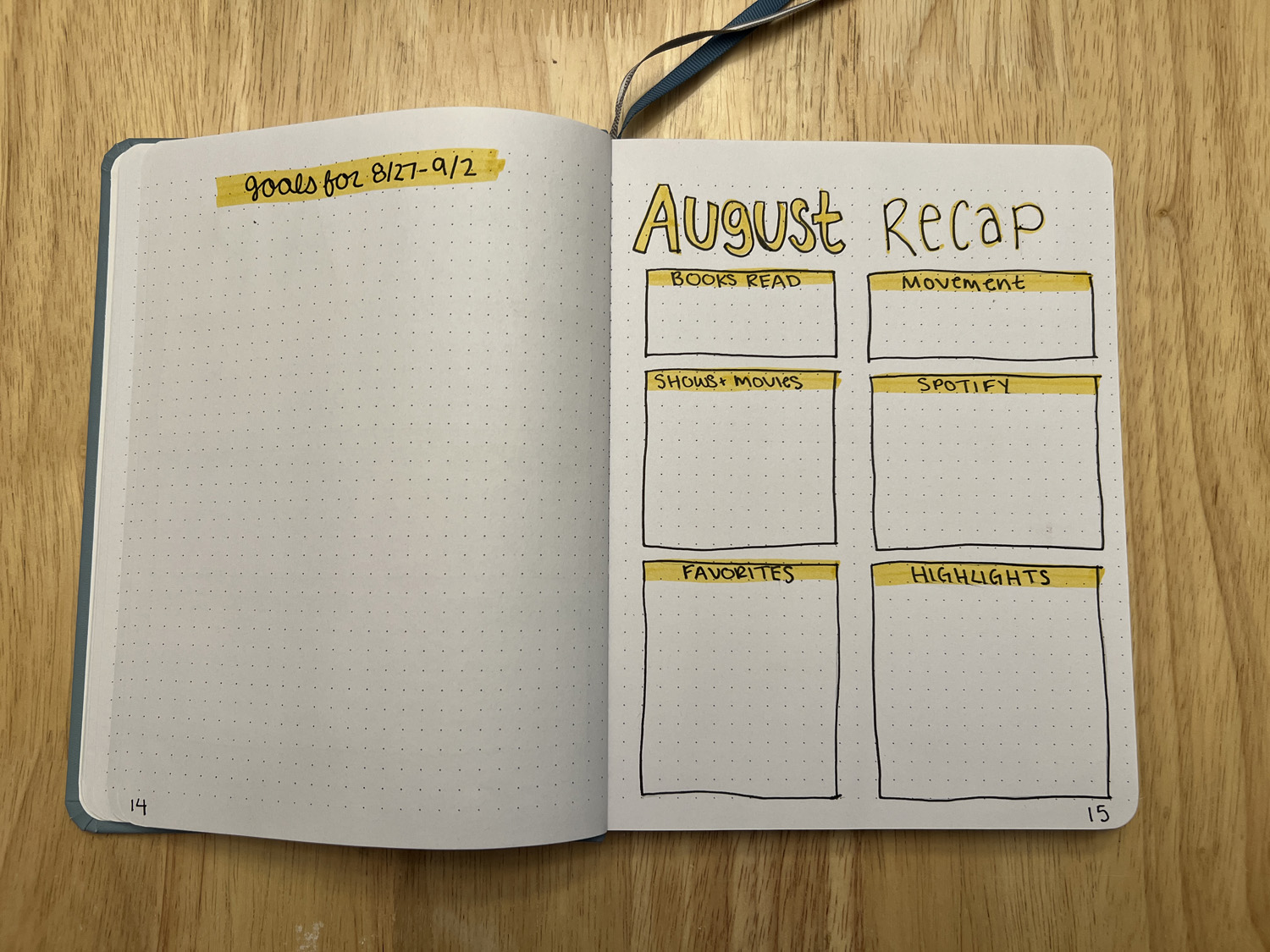 I kept most of the spreads the same as the ones from my other notebook: days read, books read, movement list, highlight of the day, monthly spreads, and goals for each week. I did add two new ones: trending for each month as well as a monthly recap.