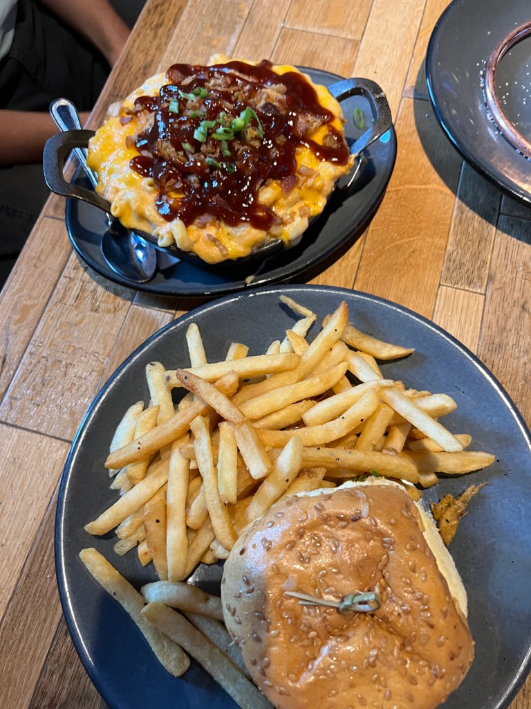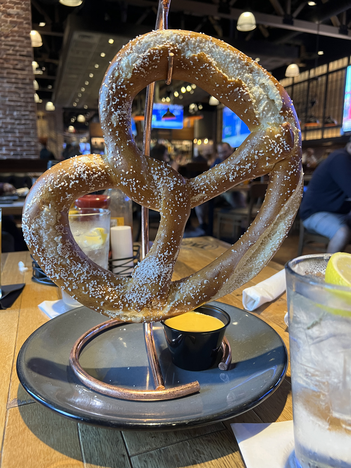For drinks, I got a Mighty Squirrel Cloud Candy (one of my favorite IPAs) and Josh got a Sloop Pumpkin IPA. Of course, we had to split a giant pretzel, and the beer cheese is in my top three now. For our meals, Josh got the Amory Mac and Cheese and I got the Pulled Chicken sandwich.