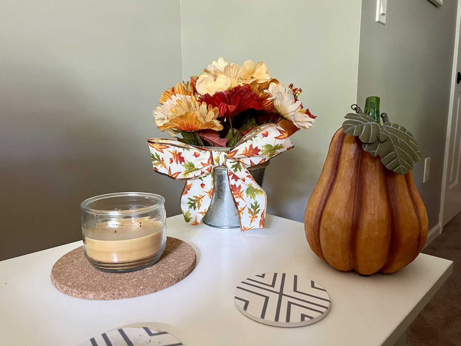 I put out my fall decorations last week. Josh helped bring the bin up from the basement and supervised while I aimlessly wandered around trying to figure out where to put everything. It instantly made the living room feel so much cozier. Unfortunately, I realized I only have three fall-scented candles, which is devastating. Josh suggested a trip to Target to make up for it.