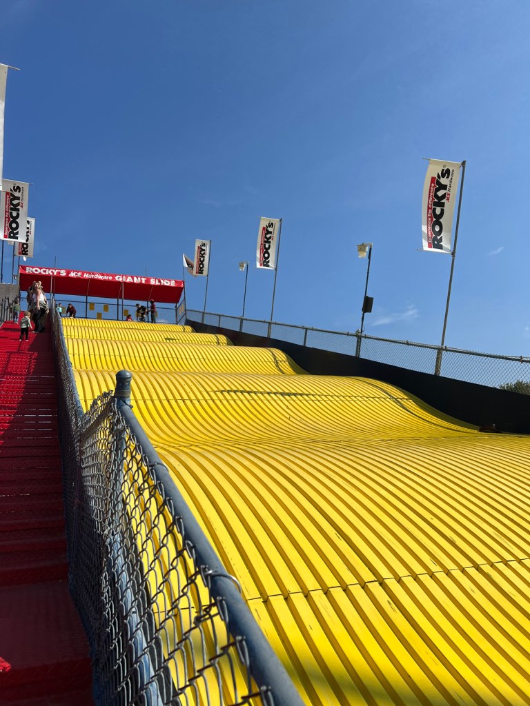 Our first stop, like last year, was the big yellow slide. It’s the cheapest thing you can do at The Big E: it’s $2 per ticket.