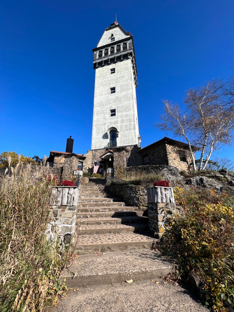 Josh and I went for another “hike”—I call it walking in the woods—at Talcott Mountain. I didn’t realize the mountain was going to be so steep, so I complained most of the time but enjoyed it overall. We walked up the trail to Heublein Tower, which was built in 1914 and was used as a summer retreat for the Heublein family. The state purchased the tower in 1966 and opened the state park to the public in 1974.
