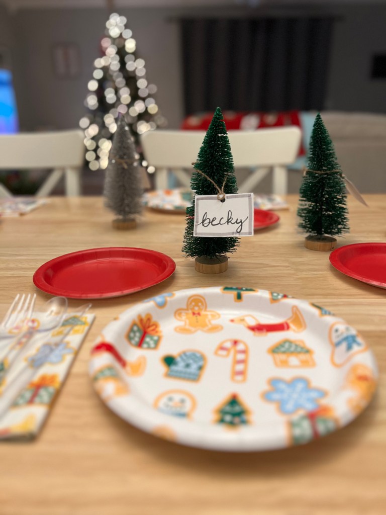 And we hosted a small holiday party! We originally wanted to do a Friends-giving but it didn’t work with all of our schedules, so we made it a Christmas/holiday party instead. It was with Josh’s friends (who I ran the 5K race with last month), and everyone brought something to eat. I made the little place card trees, we got festive paper plates from Target, and it was low-key. After we ate, we played Cards Against Humanity: Family Edition and Joking Hazard.