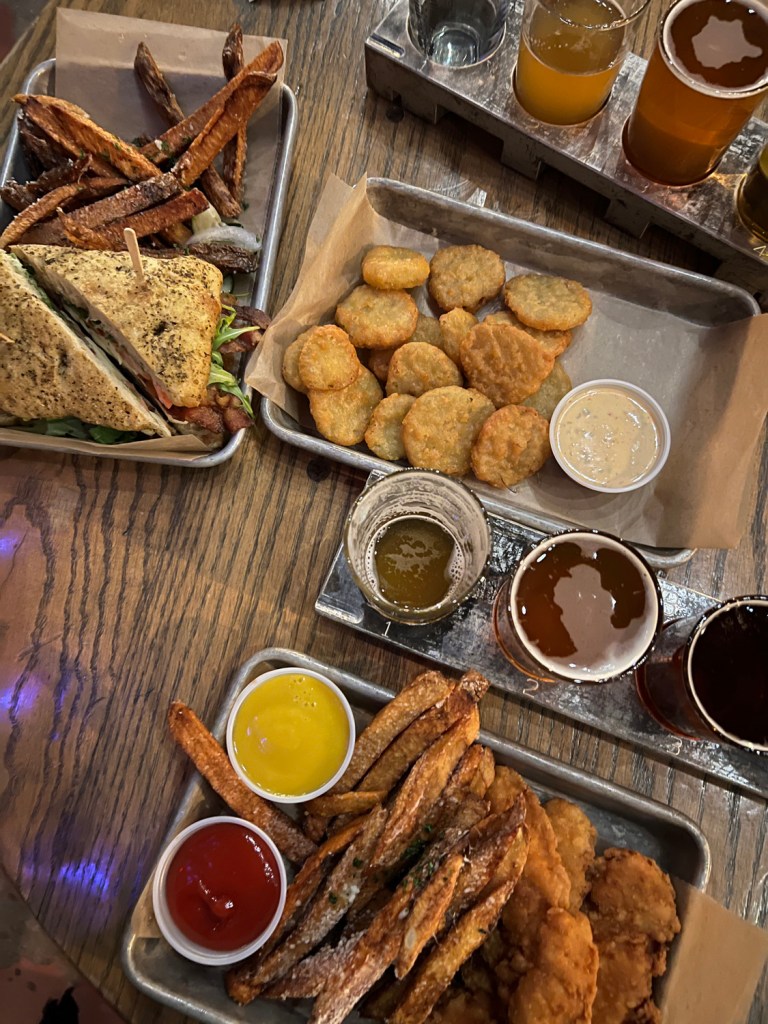 We both got flights and split fried pickles; Josh got a pesto chicken sandwich and I got chicken tenders (don’t judge: every once in a while I like to get chicken tenders).