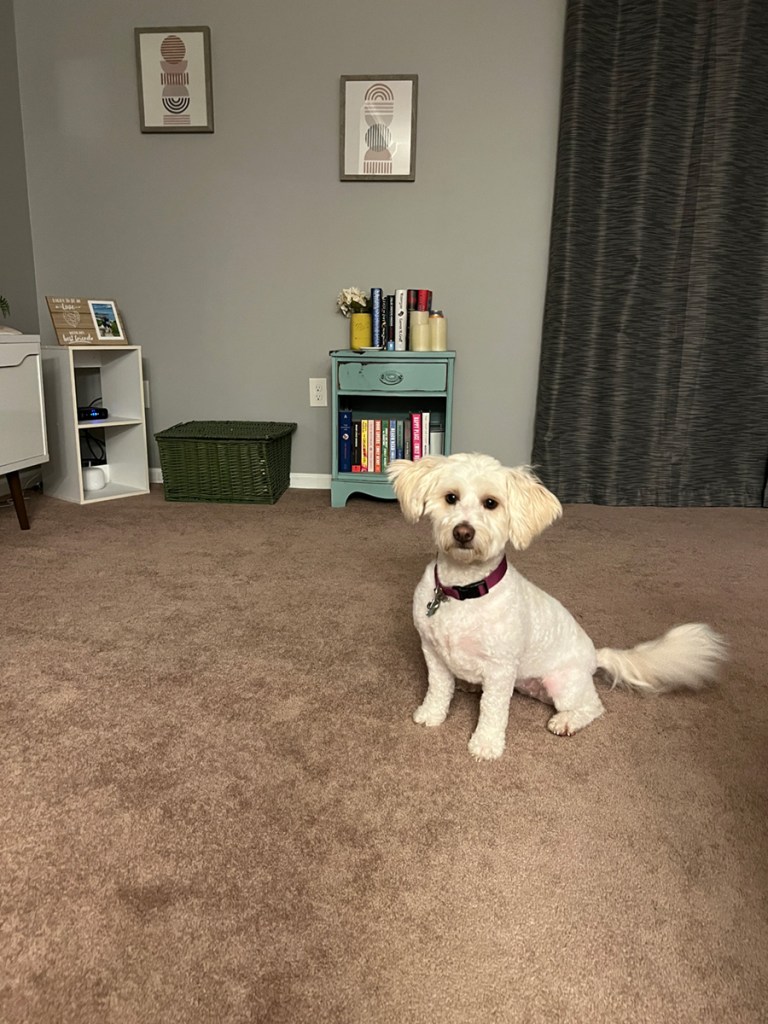 Josh’s parents’ dog, Pennie, spent the night with us last week! She was a little confused when she first got to the condo but spent a lot of time exploring. I told her we’d get yummy dog treats for her next sleepover.