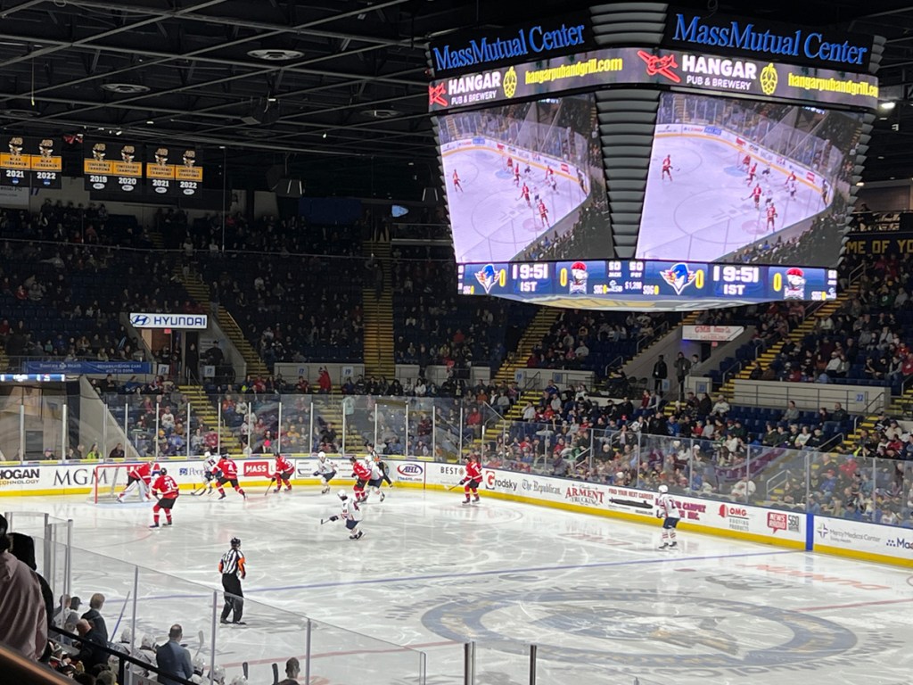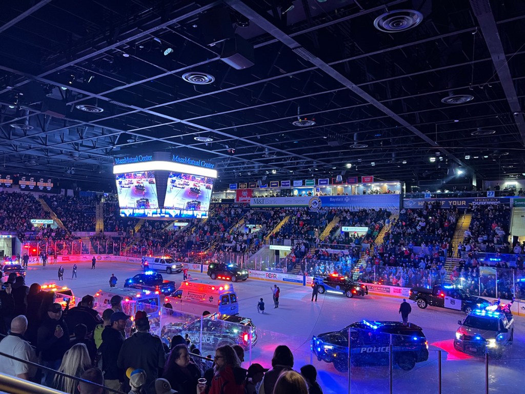 Our first Springfield Thunderbirds game of the year! Josh and I went with my dad (it was his first-ever hockey game), a family friend, and his nephew. The promo for the night was Hometown Heroes, and the game was sold out; we got stuck in traffic trying to get there but still made it on time. During the first intermission, local first responder vehicles came onto the ice with all of the lights and sirens. The T-Birds won 6–1 against the Charlotte Checkers.