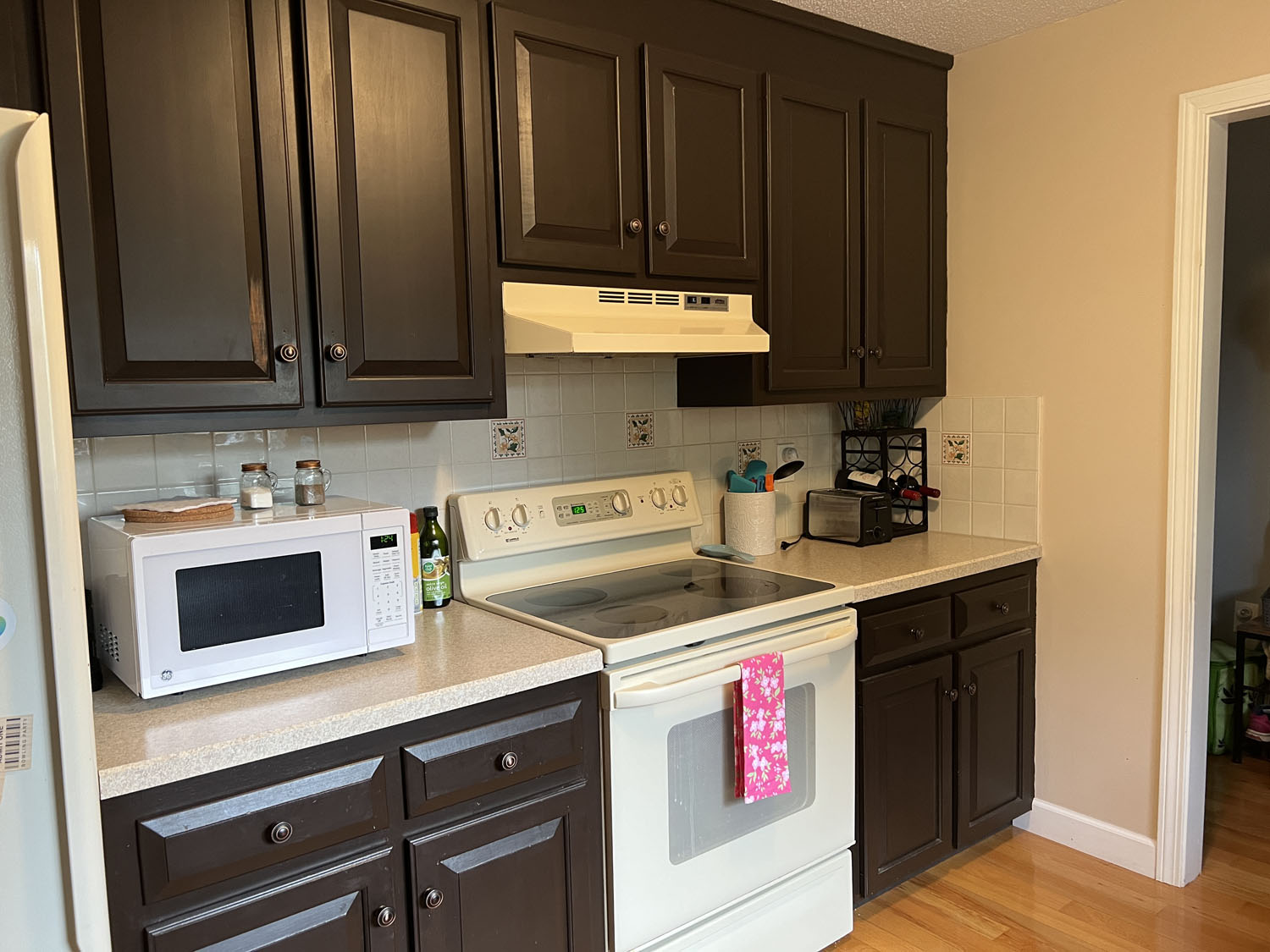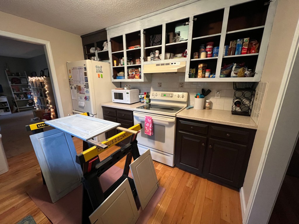 I’ve been pretty occupied this month with re-painting my kitchen cabinets. I tackled the first section above the stove/fridge, and it took me just over two weeks to go from start to finish. Shoutout to my mom for coming over one Sunday to paint for three hours. I’ve been trying to work on something for a few hours after work, and it was slow progress for a bit, but I’m so happy with how the color came out. Now I’m moving onto the lower cabinets below, which will be painted sage green.