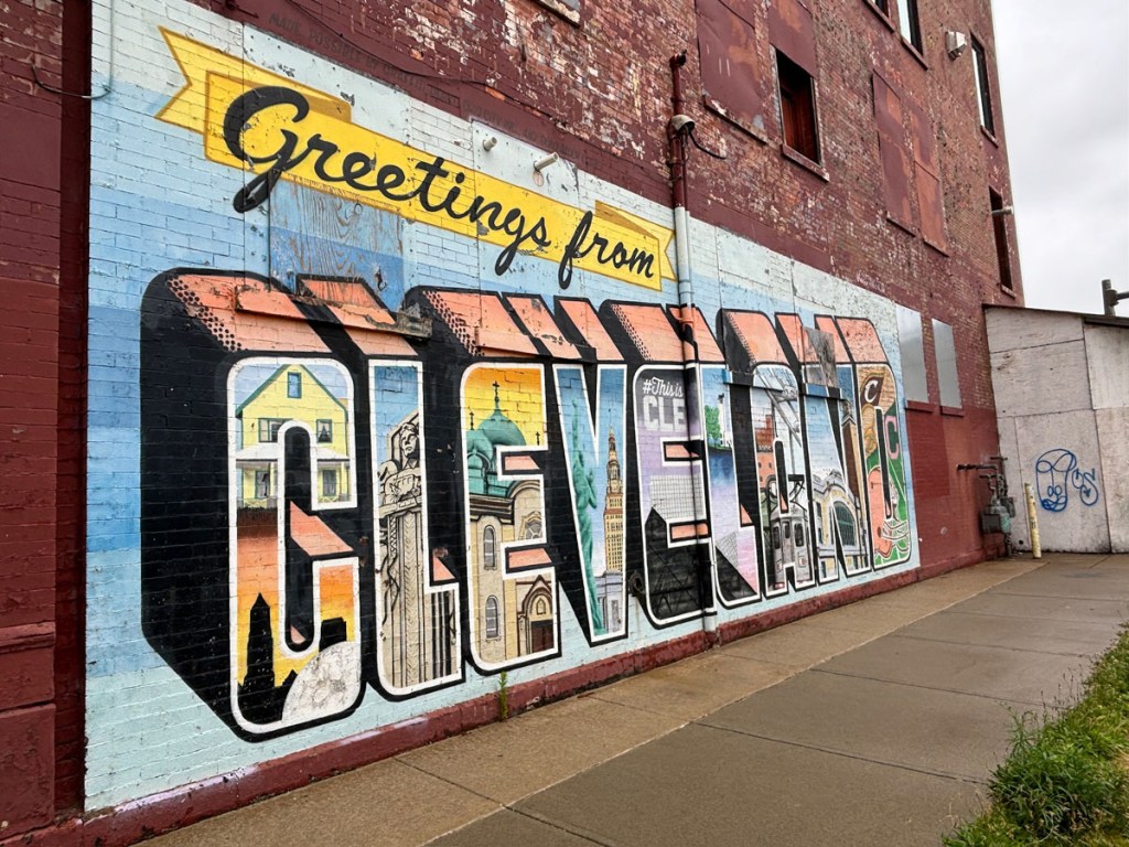 Greetings from Cleveland mural. Somewhere along in my research for our trip I found a blog that listed all of the cool murals around the city. One of them was a few blocks away from our Airbnb, so obviously we had to go.