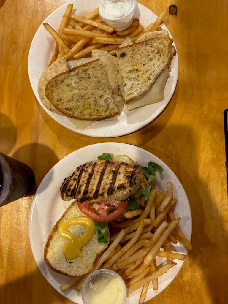 Lunch: West Side Market Cafe. This restaurant was inside the West Side Market, and I think we got one of the last few open tables. The cafe was super busy but the service was quick. Josh got a pierogi sandwich, and I got a grilled chicken sandwich; Josh still thinks a lot about that sandwich he got.