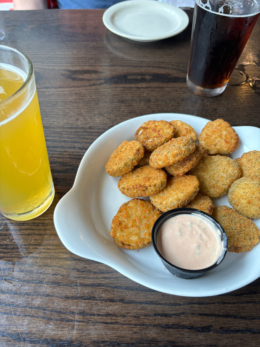 Dinner: Flannery’s Pub. Josh and I love an Irish pub, so when I found Flannery’s for dinner, we knew we had to go. We each got a beer and split some fried pickles; Josh got a buffalo chicken wrap and I got a turkey bacon avocado sandwich. It seemed like a lot of people in the restaurant had gone to the Guardians game beforehand; the stadium was a few blocks away and everyone had on Guards gear.