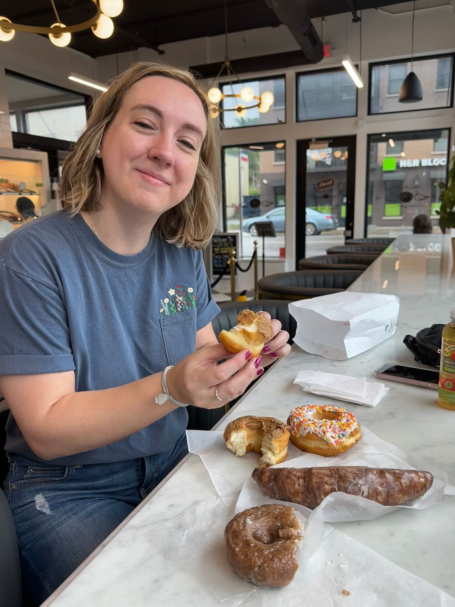 Breakfast: Goldie’s Donuts. This cute little donut shop was a five-minute walk from our Airbnb. I was worried since it was Sunday morning that it would be crowded, but by the time we got there after 9:00 a.m., there were only a few people in there and we were able to grab seats as well. Josh and I got four donuts to split; my favorite was the maple frosted one.