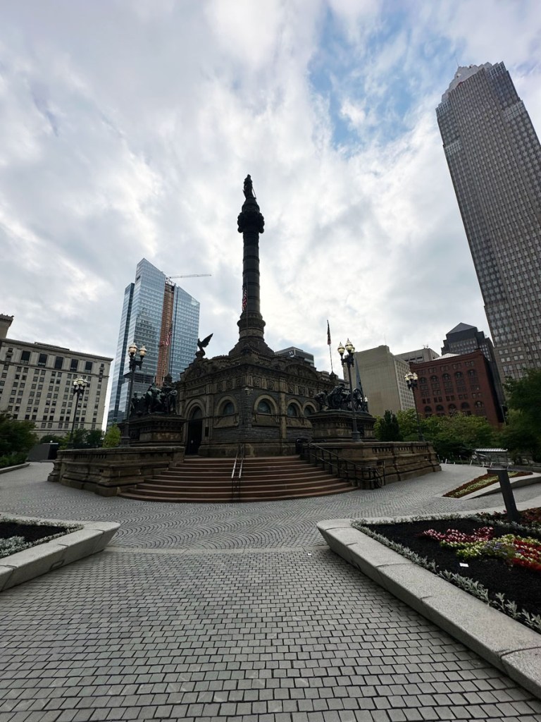 Public Square Park and Soldiers and Sailors Monument. The park was a short walk from where we were in downtown, but it looked like it was under construction. We walked around the Soldiers and Sailors Monument, which commemorates the American Civil War and those from the county who fought in the war; there’s an inside to the Memorial Room, but it was already closed for the day.