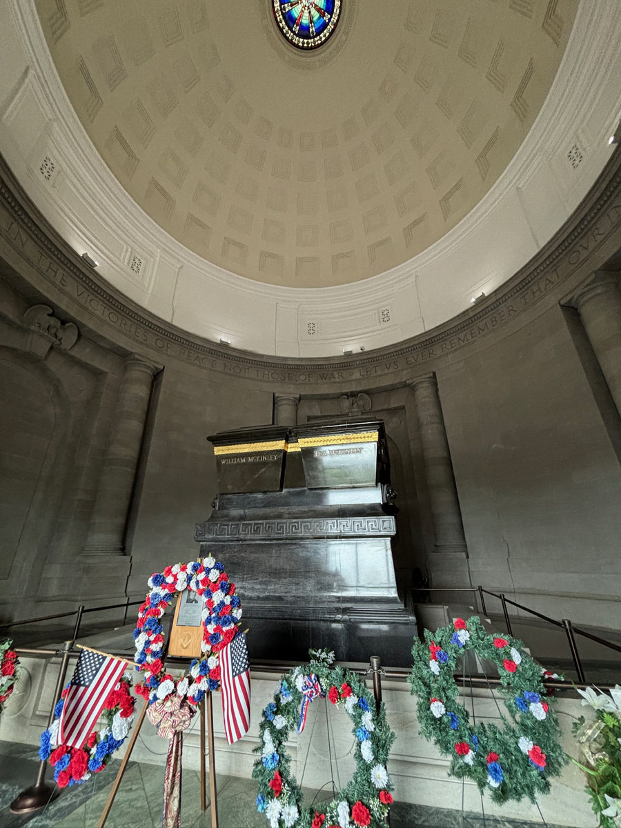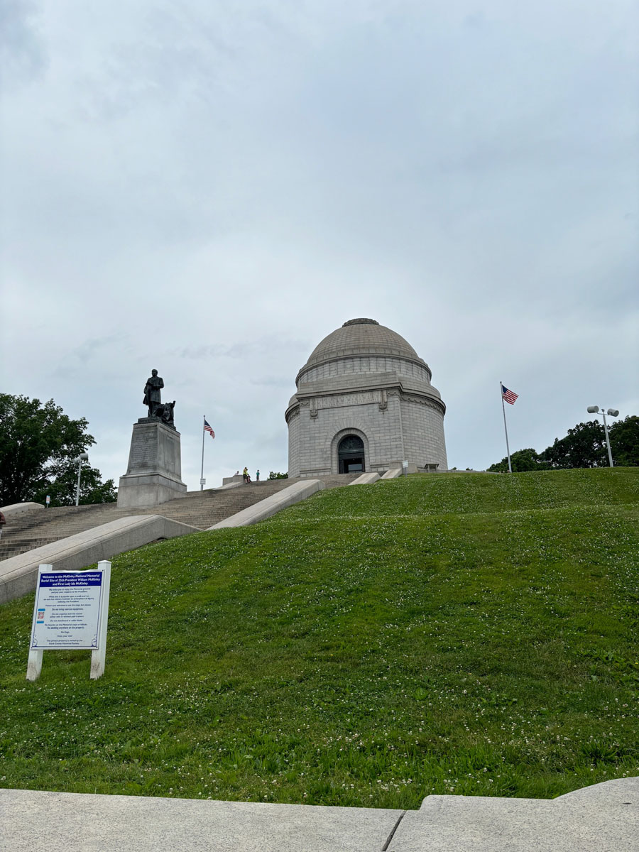 After we walked up to the memorial (that’s right outside the museum) where McKinley, his wife, and their two daughters are buried. The memorial was built from 1905–1907 and has 108 steps leading up to the memorial itself. We saw a few people there working out and running up and down the stairs.