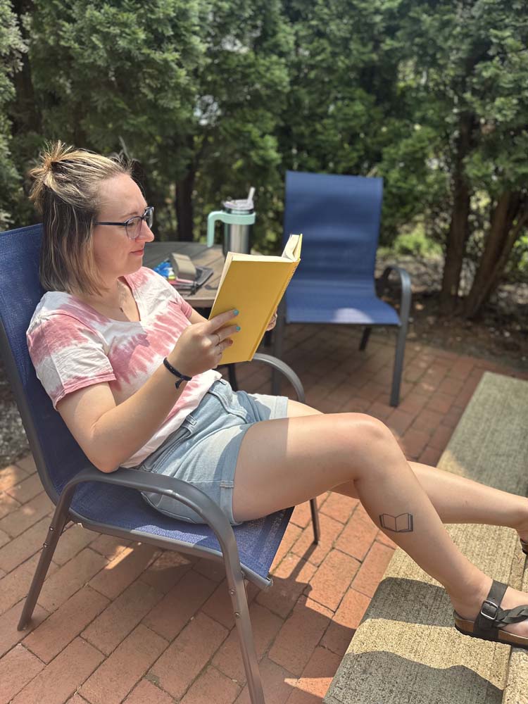 The little patio off the living area at the Airbnb was perfect for reading since the space was surrounded by arborvitaes, blocking out the traffic on the street and most of the sun in the sky.