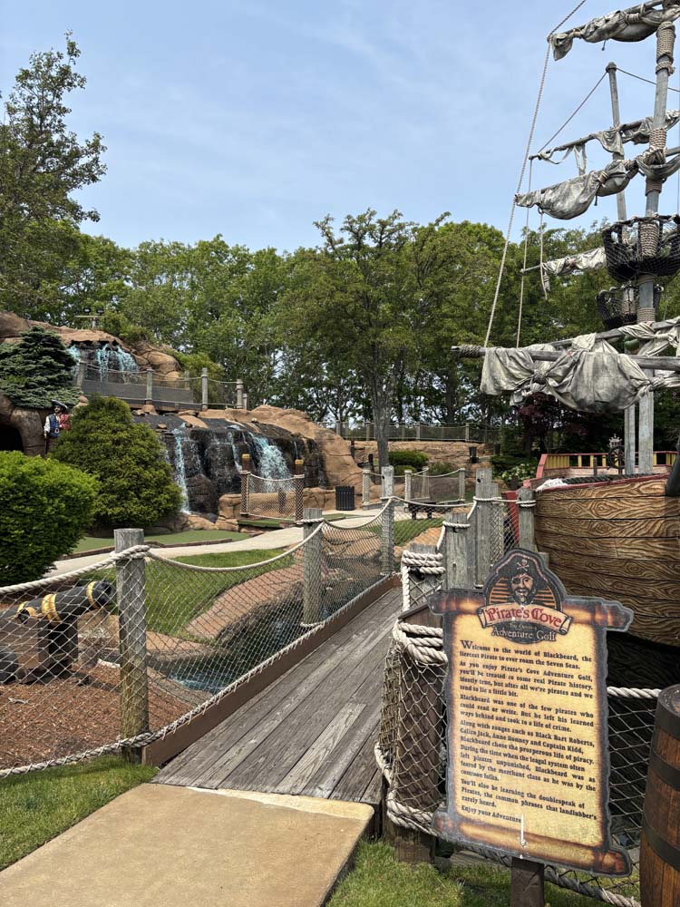 Pirate’s Cove mini golf. This came as a recommendation from my hairdresser, and when I looked it up, it was super close to the Airbnb, and Josh loves mini golf. We went around 11:30 a.m. to go before lunch and before families show up after dinner. There were some other people there, too.
