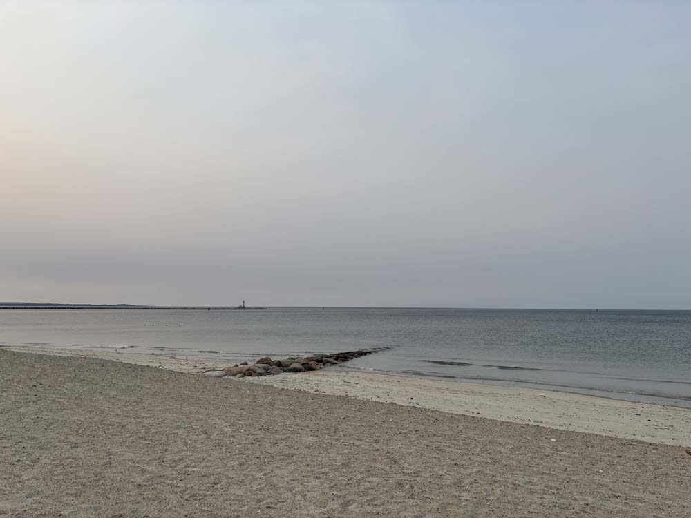 It’s right on the water (I think it’s Town Neck Beach), and we sat in the Adirondack chairs with our beers and slices of pizza. I got Tiny House, and Josh got two; I forget the names, but the second one was a brown ale. After we ate and finished our beers, we took a walk on the beach.